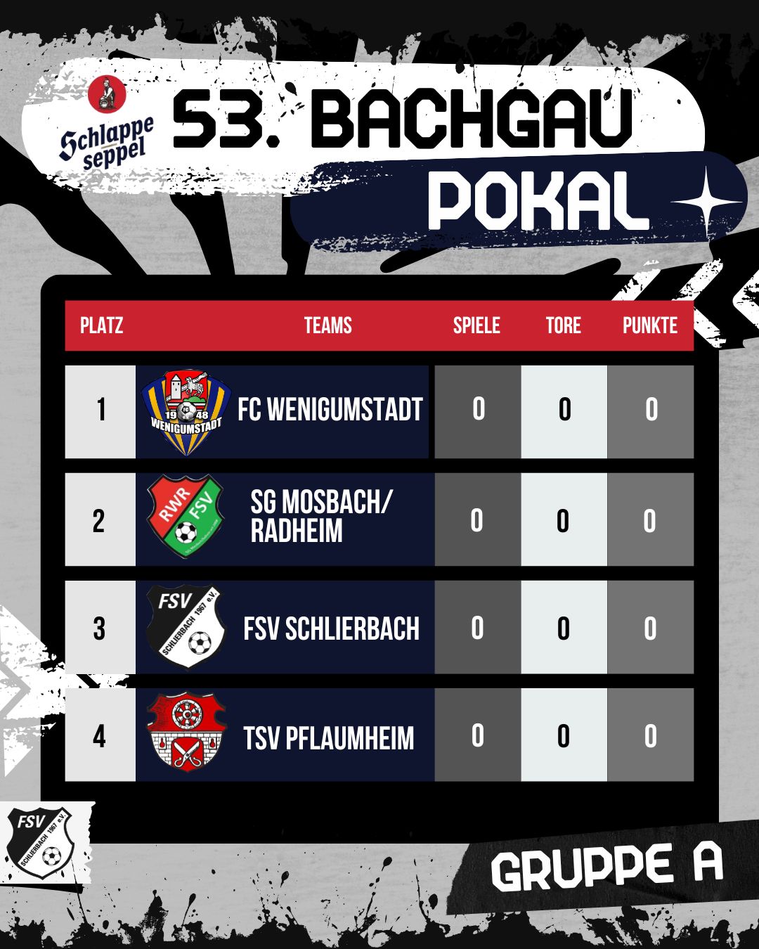 Die Auslosung ergab für uns folgende Gruppengegner: SG Mosbach/Radheim, FC Wenigumstadt, TSV Pflaumheim