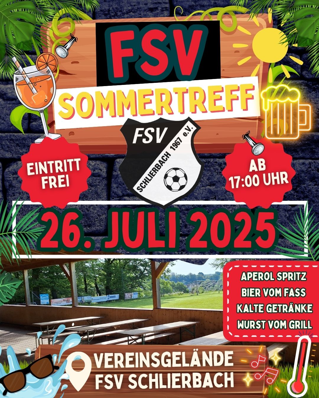 Am Samstag, 26.07.2025 findet unser "FSV-Sommertreff" unter unserem Vordach am Vereinsgelände statt.